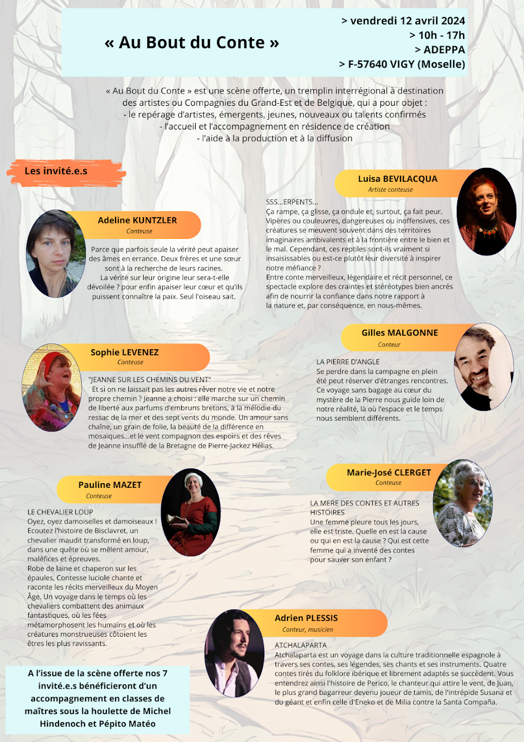 Après deux stages d'accompagnement dirigés par Pepito Mateo et Michel Hindenoch, les 5 candidats d'Au Bout du Conte 2023 sont prêts à vous présenter le fruit de leur travail !